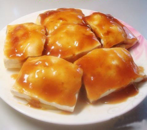 13.把燒好的醬汁澆到豆腐上即可,就可以吃了。