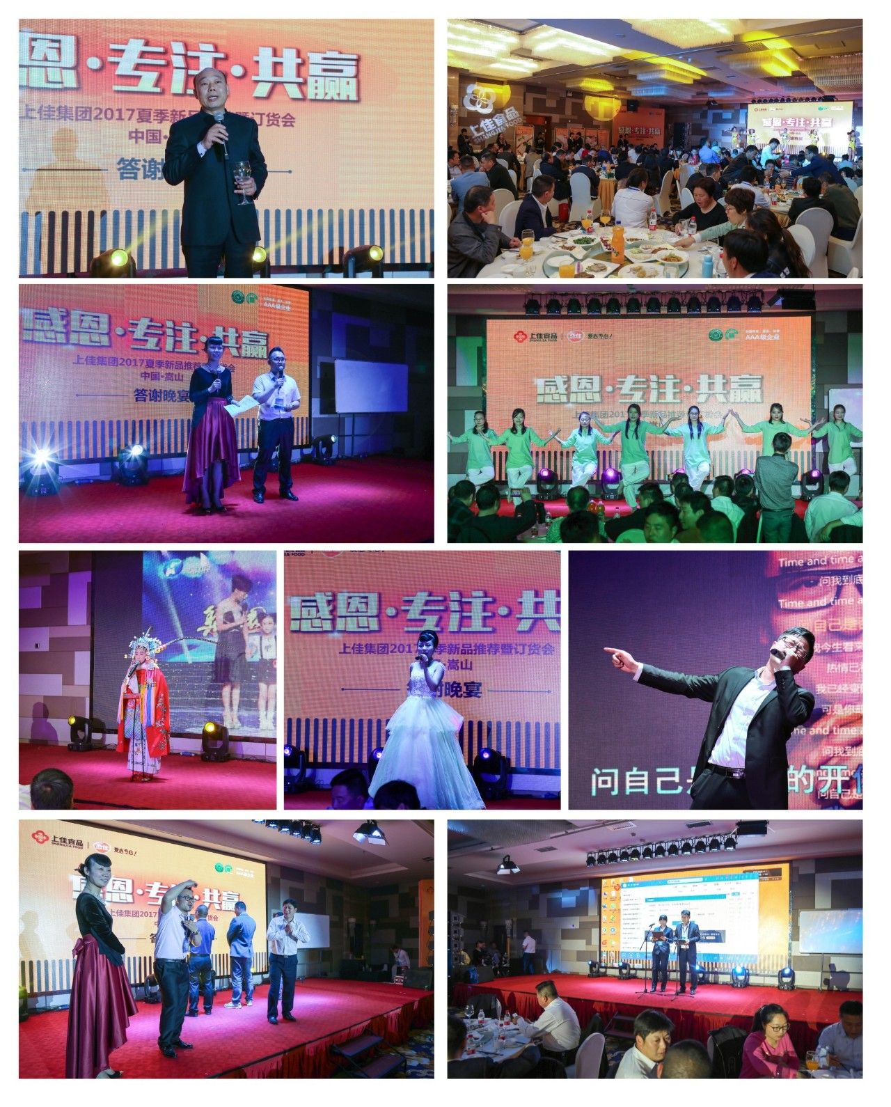 4月6日晚,為回饋廣大經(jīng)銷商朋友的厚愛,上佳食品集團組織答謝晚宴,首先由上佳集團董事長李戰(zhàn)勝先生致辭,晚宴現(xiàn)場有梨園春小擂主的精彩演繹《朝陽溝》、希望文武學(xué)校的《少林功夫》、營銷部的歌曲聯(lián)唱、后勤部的舞韻瑜伽等節(jié)目,勁歌熱舞,high翻全場,與會觀眾們拍手稱好。