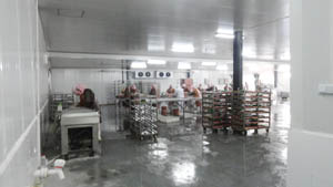 10月17日鄭州廠改擴建工作初步完成并投產(chǎn)試運行。經(jīng)過廠部全體基建員工的共同努力,新車間面積由原1000㎡增加至1800㎡,冷庫面積由原80㎡增加至220㎡,引進了一批大中型設(shè)備,生產(chǎn)能力由原12噸/天增加至30噸/天;