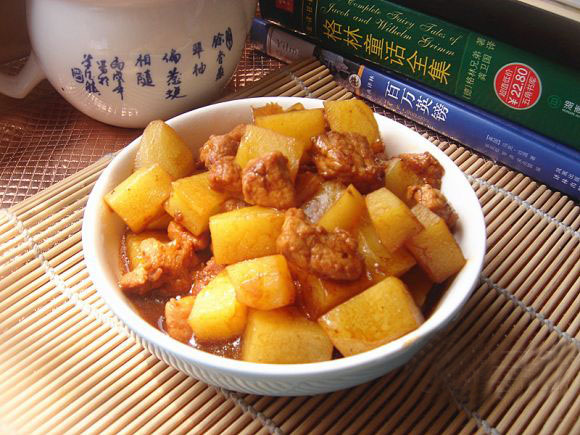 土豆燒肉,非常家常的一道菜品,土豆軟面的口感,非常的舒適。1.土豆去皮切丁,瘦肉切丁2.起油鍋,下肉丁。3.滑散炒熟4.放老抽提味提色5.下土豆丁6.加鹽炒...查看更多>>