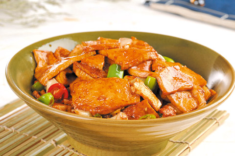 食材 1.將千葉豆腐解凍 2.切成小片 3.鍋中放油 4.把千葉豆腐過油撈出備用 5.尖椒切片 6.起鍋留底油,把蔥姜片下入炒香,再下入尖椒...查看更多>>