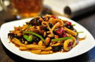 宮保雞丁的做法主料:雞胸脯肉180克 配料:油炸花生仁20克(去皮)、干辣椒8個、生姜5克、蔥5克 調(diào)料A:水淀粉1大匙、清水1大匙、雞...查看更多>>