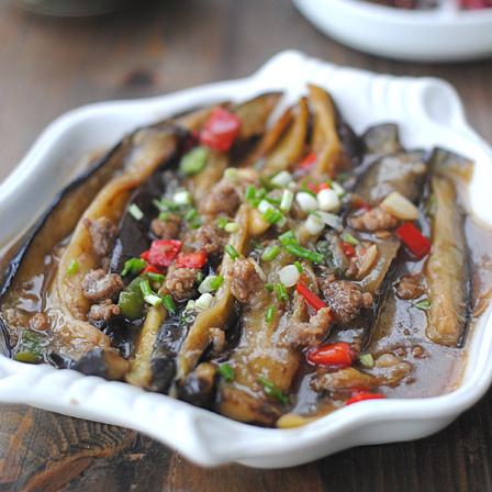 材料: 長茄子2個、豬肉糜100克、青紅椒各1個、雞蛋1個配料: 鹽、白糖、料酒、香油、胡椒粉、黃醬、干淀粉、水淀粉、蒜 做法: 1...查看更多>>