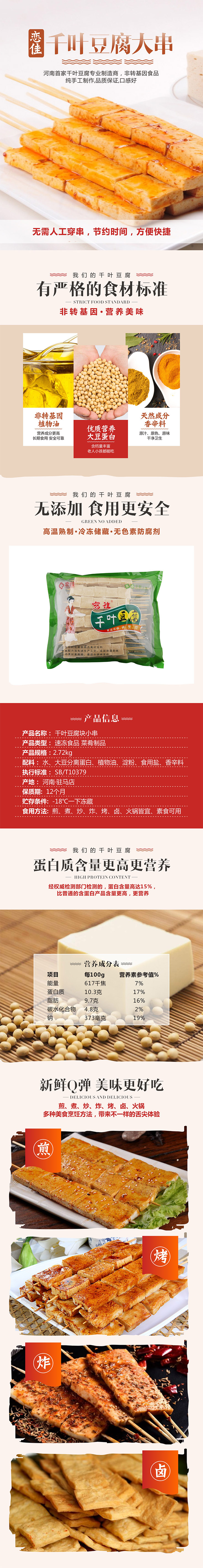 產(chǎn)品賣(mài)點(diǎn):1、將蔬菜與豆腐完美結(jié)合,品質(zhì)更優(yōu)、更時(shí)尚!2、節(jié)省人工穿串費(fèi)用,食用更方便。